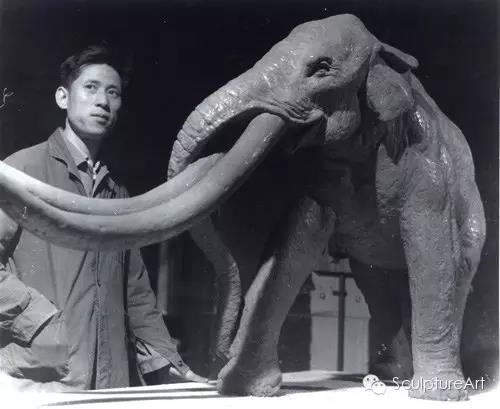七十年代 傅维安先生在北京自然博物馆塑造猛犸象雕塑