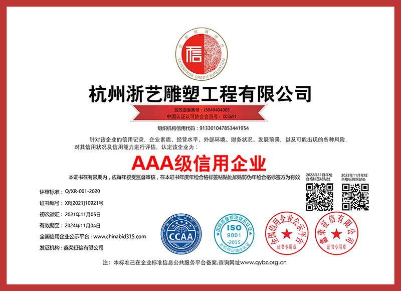 杭州浙艺雕塑工程有限公司始创于1998年,是一家集雕塑设计制作、安装施工、专业维护于一体的大型雕塑工程企业。